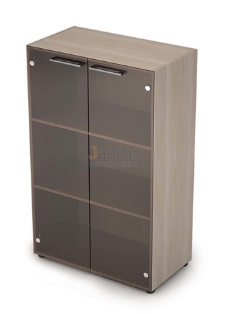 Офисный шкаф средний со стеклом 4Ш.017.3 №27604 - столешница: дсп 38 мм, кромка: пвх, покрытие: меламин, стекло: матовое.