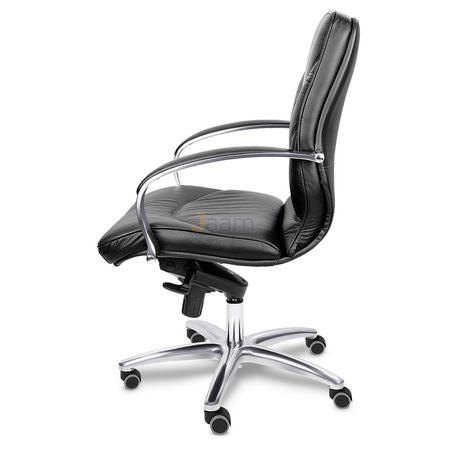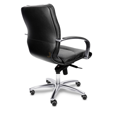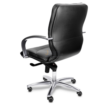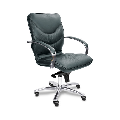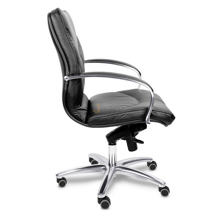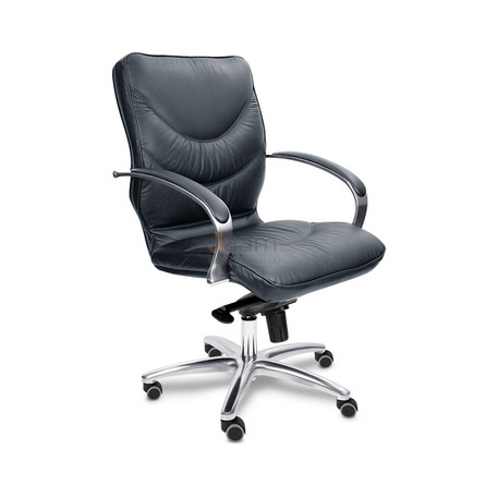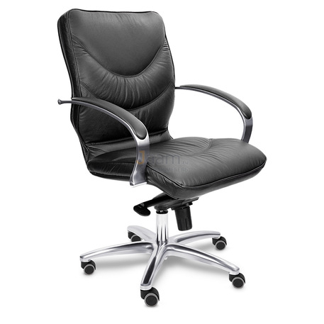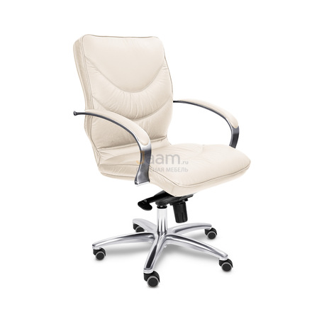 Кресло для руководителя LEEDS CHROME B кожа+кож.зам. №38309 - высота спинки: 57 см, высота от пола до сиденья: 50-57 см, диаметр крестовины: 72 см, ширина спинки: 53 см, объем: 0,37 м3, вес: 21 кг, механизм качания без фиксации, регулировка жесткости качания по весу сидящего, ограничения по весу: 150 кг, основание: металл, каркас: немонолитный, подлокотники, поясничный упор, регулировка по высоте, резиновые колеса для паркета, в наличии в Костроме.