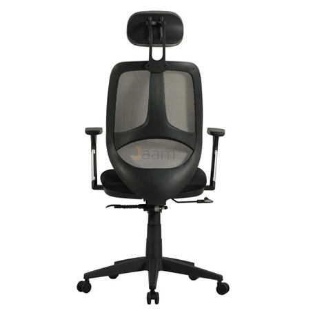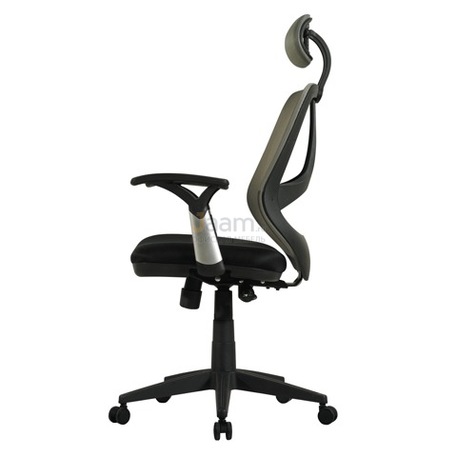 Кресло для персонала Saturn ER-400 черное с серым №44577 - высота спинки: 61,5 см, ширина спинки: 43 см, механизм качания без фиксации, ограничения по весу: 90 кг, основание: пластик, каркас: немонолитный, производитель: россия и снг, подголовник, подлокотники, регулировка по высоте, сетка в сидении, в наличии в Костроме.