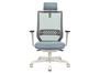 Кресло для руководителя EXPERT WHITE BLUE №44821 - объем: 0,181 м3, вес: 16,6 кг, механизм качания без фиксации, ограничения по весу: 120 кг, основание: пластик, каркас: немонолитный, подголовник, подлокотники, поясничный упор, регулировка по высоте, сетка в спинке, в наличии в Костроме.