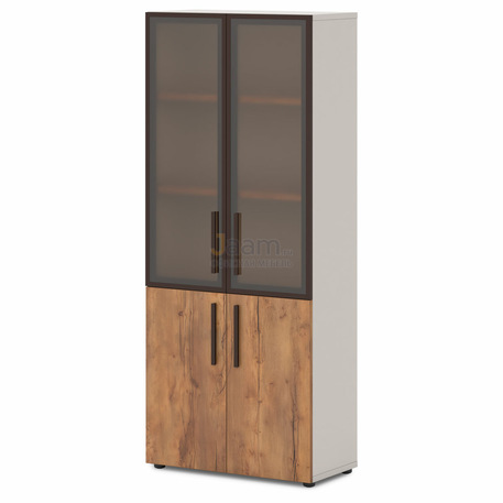 Офисный шкаф высокий широкий со стеклянными дверьми в профиле Т-645