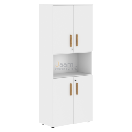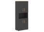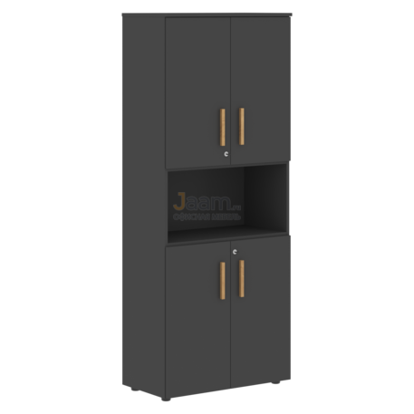 Офисный шкаф с 2-мя комплектами глухих малых дверей FHC 80.4(Z) №53053 - столешница: лдсп 18 мм, кромка: abs 2 мм, покрытие: натуральное масло-воск, стекло: сатин закаленное.